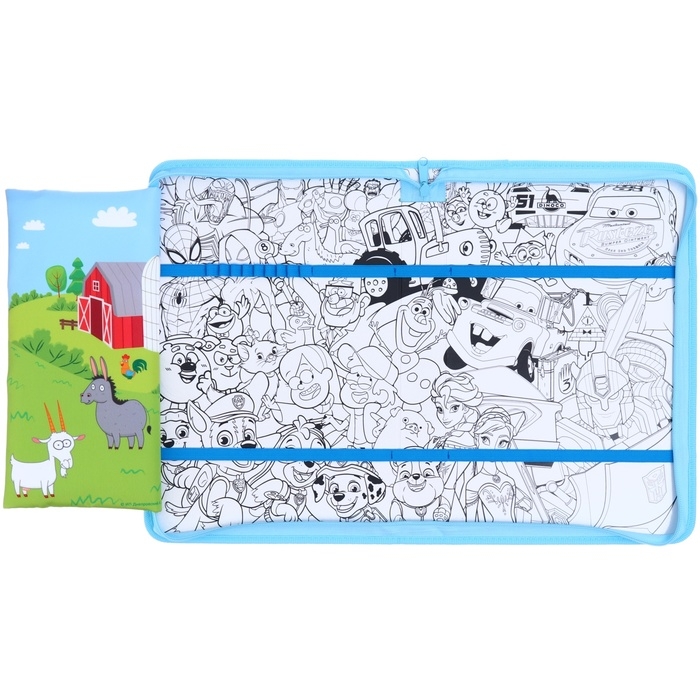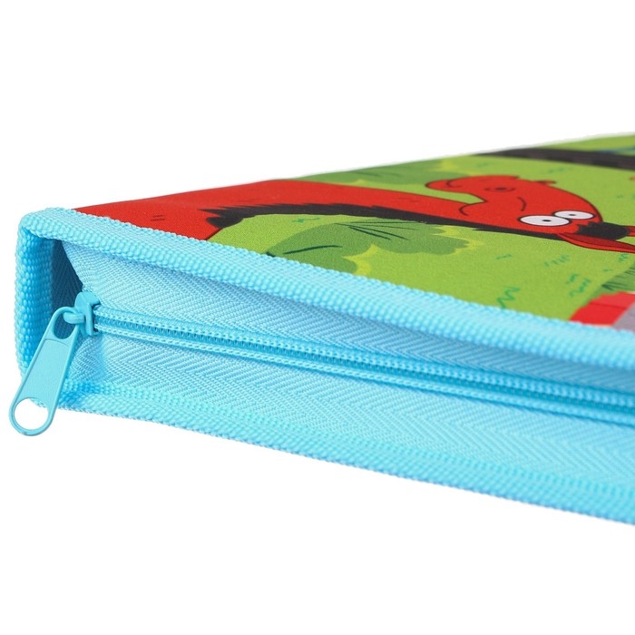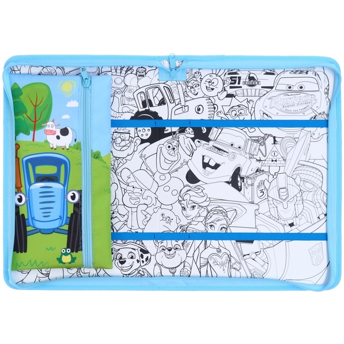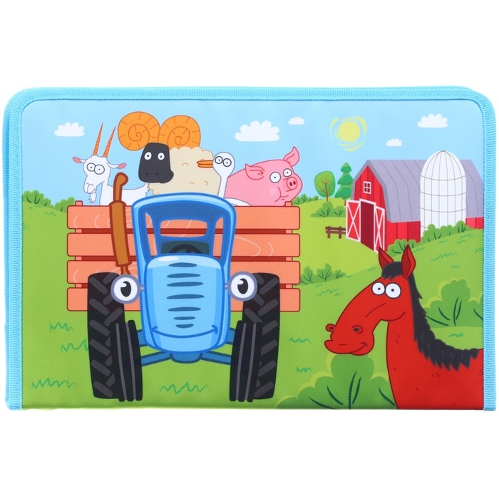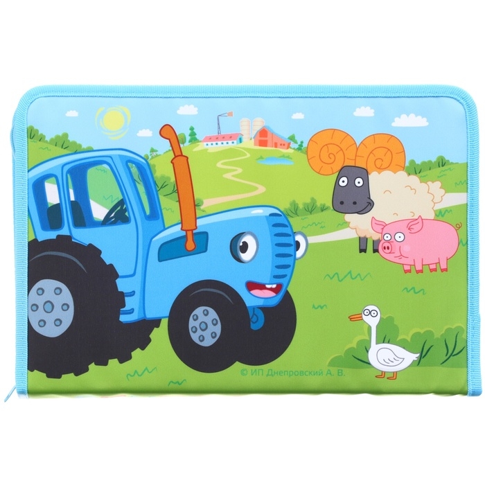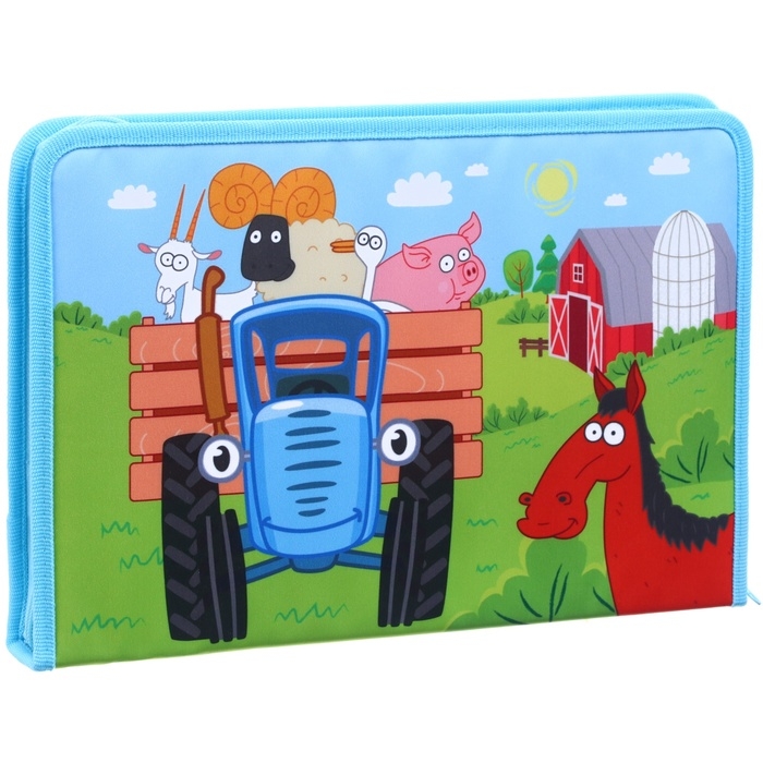 Папка для труда А4 с пеналом, на молнии, текстиль, Синий трактор
