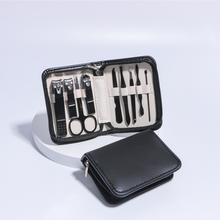 Набор маникюрный, 9 предметов, в футляре, цвет чёрный