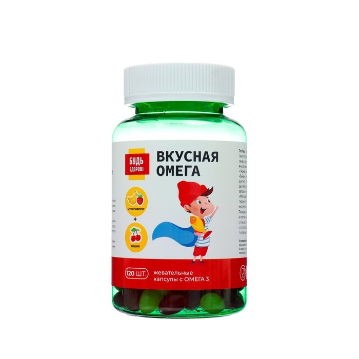 Омега-3 для детей "Будь Здоров! " вишня + мультифрукт, 3+, 120 жеватльных капсул по 700 мг