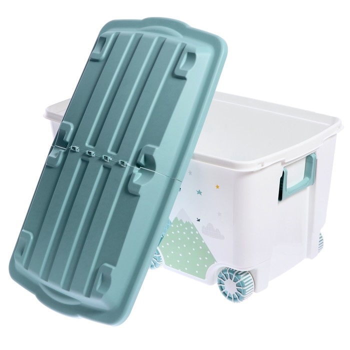 Ящик для игрушек на колесах «Горы», с декором, 685 × 395 × 385 мм, цвет светло-голубой