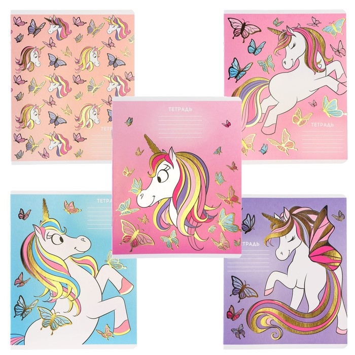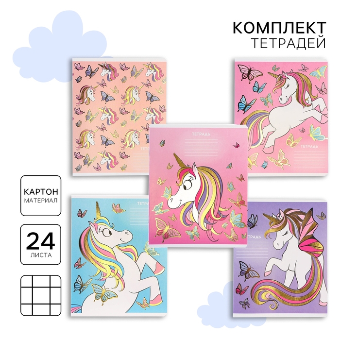 Набор тетрадей 10 штук, 24 листа, 1 сентября, в клетку, тиснение, обложка мелованный картон, Минни Маус и Единорог
