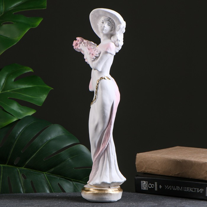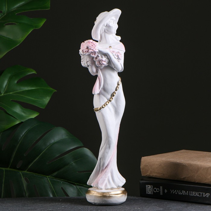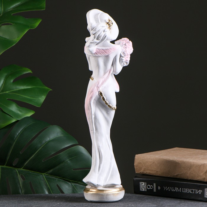 Фигура "Девушка в шляпе" малая белая/золото 10х13х38см