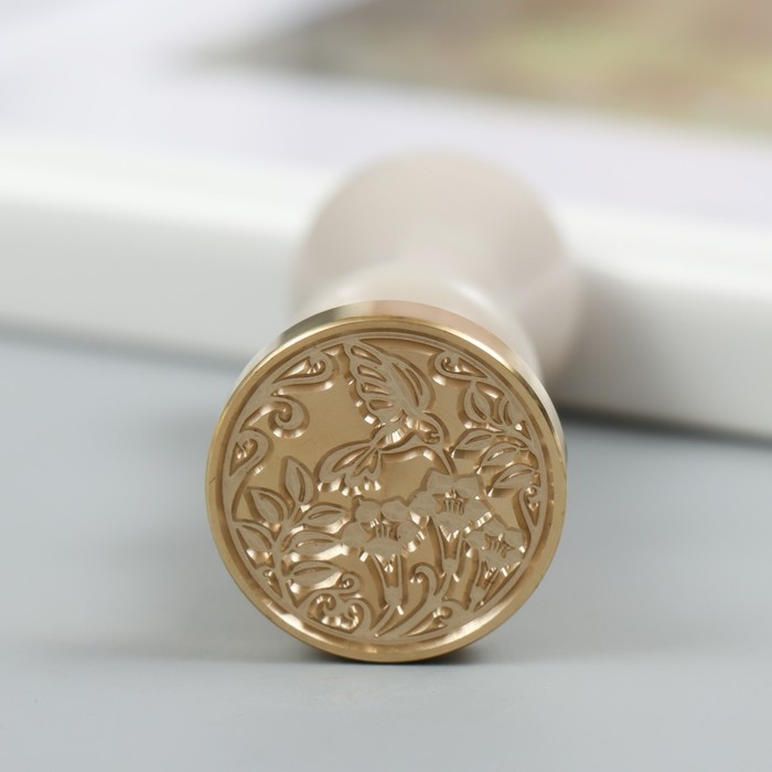 Печать для сургуча с пластиковой ручкой "Колибри в цветах" 2,5х2,5 см