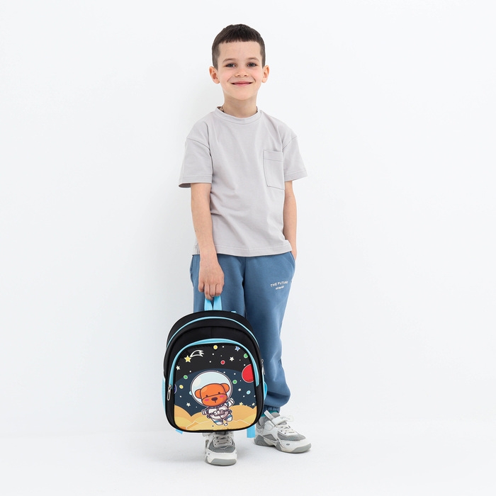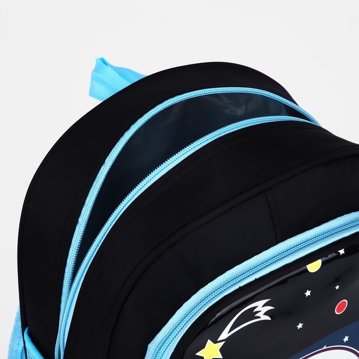 Рюкзак детский на молнии «Выбражулька», 3 наружных кармана, цвет чёрный/голубой