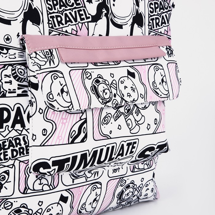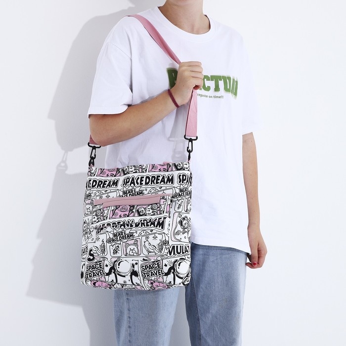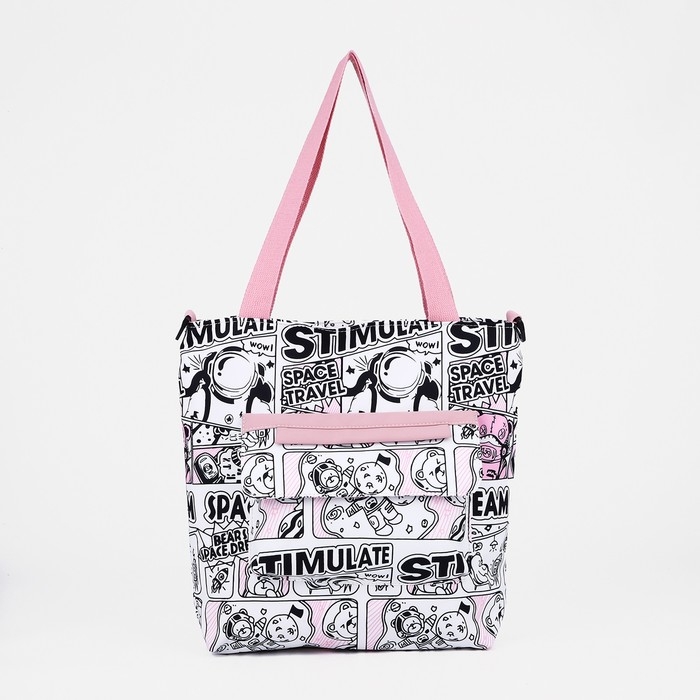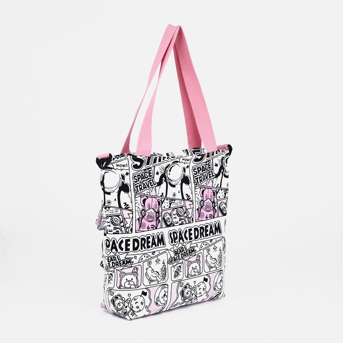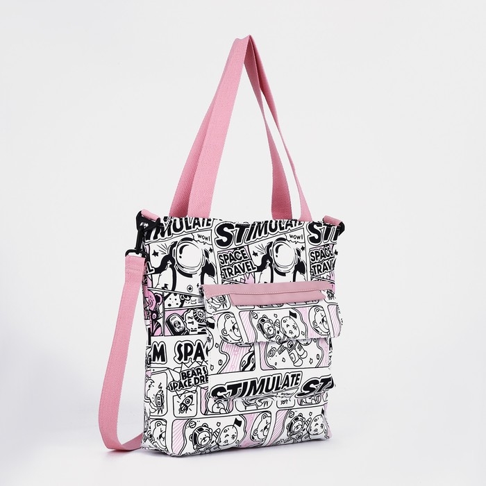 Шопер на молнии, наружный карман, цвет белый/розовый