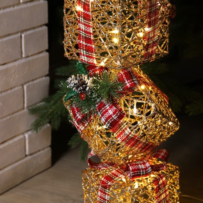 Светодиодная фигура «Башня из подарков» 15.5 × 80 × 15.5 см, металл, текстиль, 220 В, свечение тёплое белое