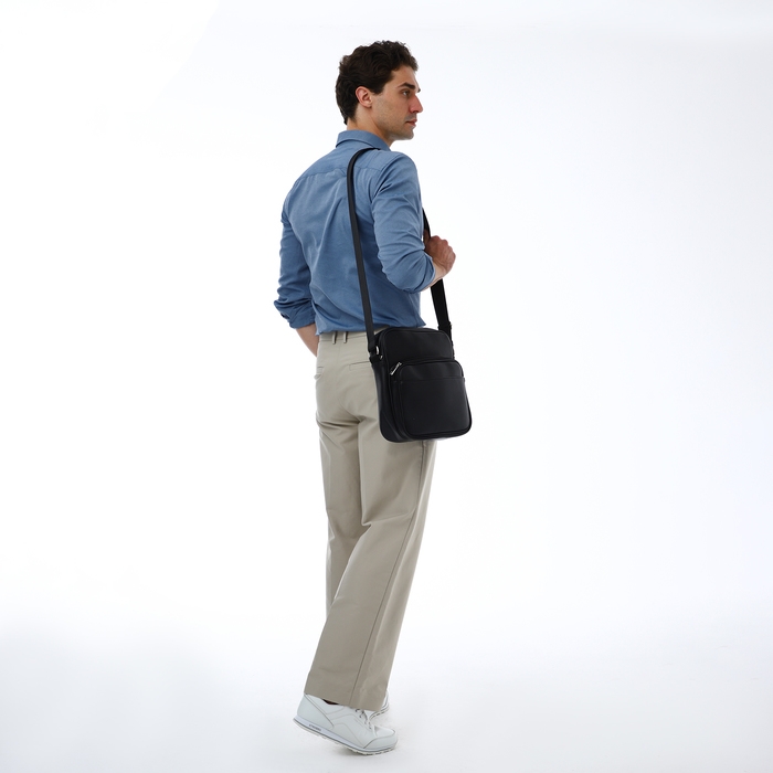 Сумка мужская через плечо TEXTURA, искусственная кожа, цвет чёрный