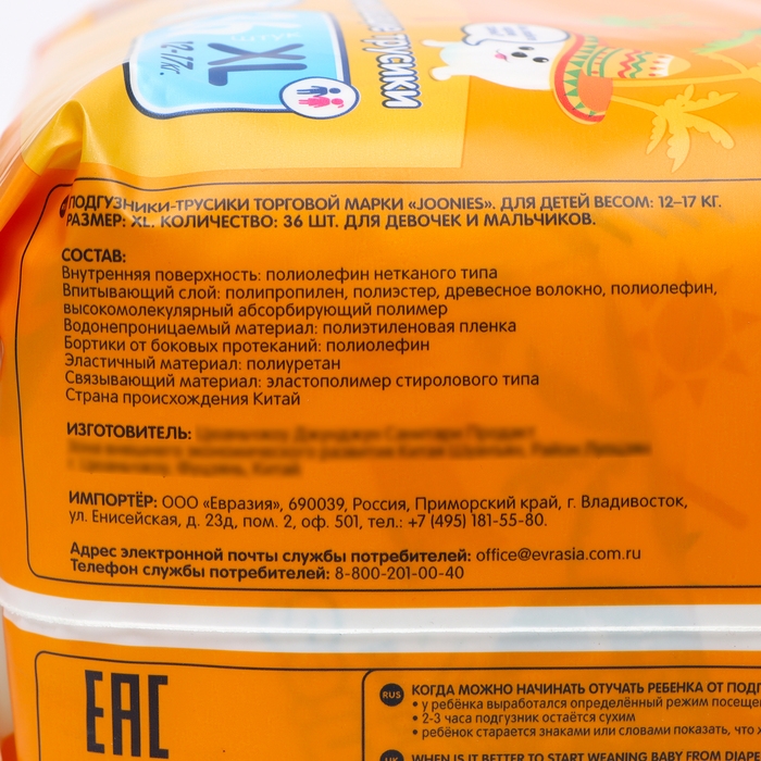 Подгузники-трусики JOONIES Standard, размер XL (12-17 кг), 36 шт.