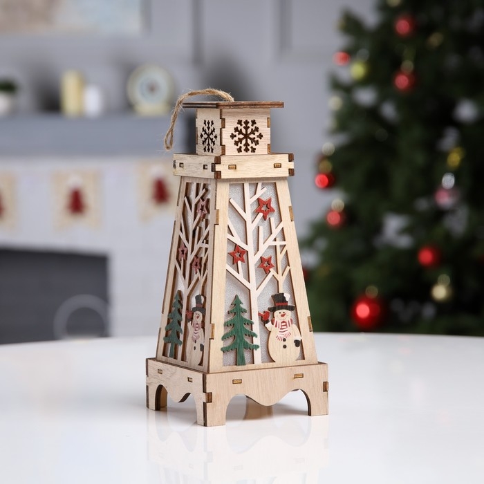 Светодиодная фигура «Снеговик в лесу» 11 × 23 × 11 см, дерево, батарейки LR1130х3 (в комплекте), свечение тёплое белое