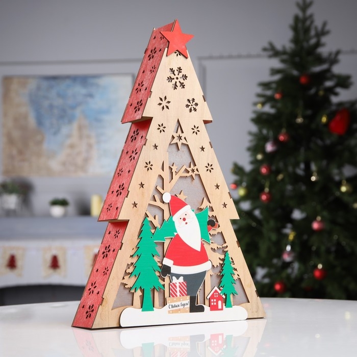 Светодиодная фигура «Дед Мороз» 29.5 × 45 × 7 см, дерево, батарейки AAAх2 (не в комплекте), свечение тёплое белое
