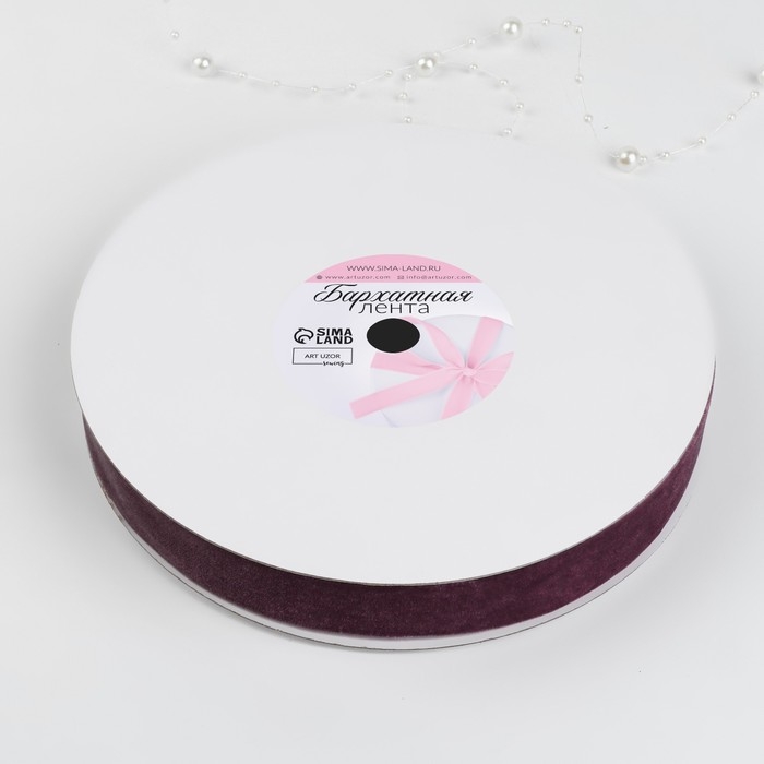 Лента бархатная, 25 мм, 18 ± 1 м, цвет ежевичный №199