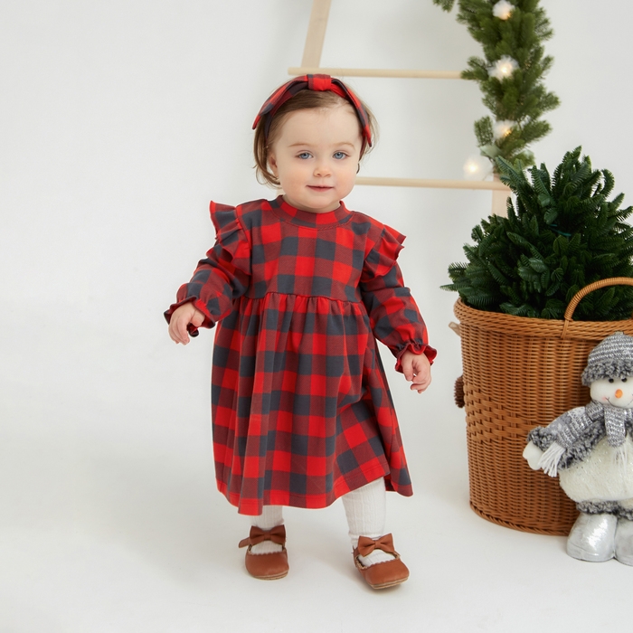 Платье и повязка Крошка Я "Клеточка", рост 86-92 см, красный
