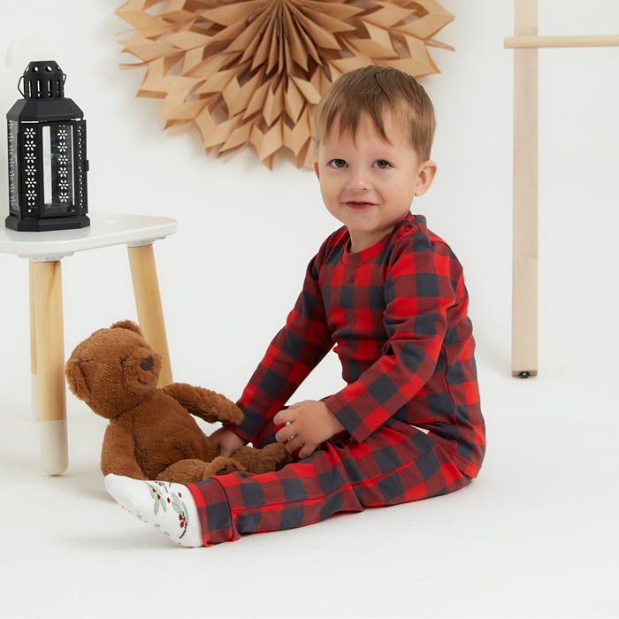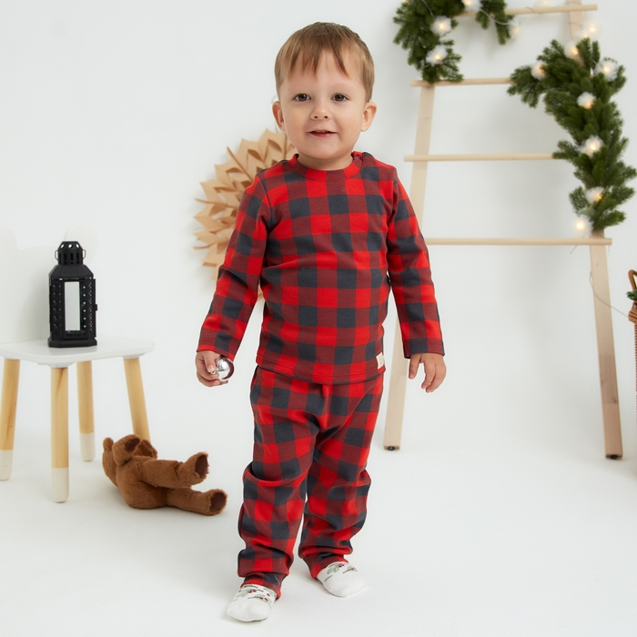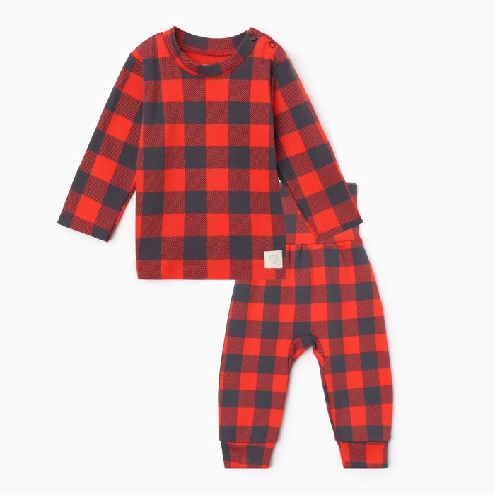 Костюм: джемпер и брюки Крошка Я "Клеточка", рост 68-74 см, красный