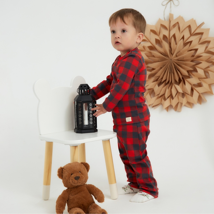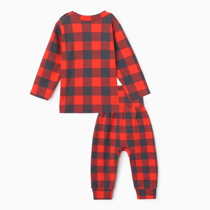 Костюм: джемпер и брюки Крошка Я "Клеточка", рост 86-92 см, красный