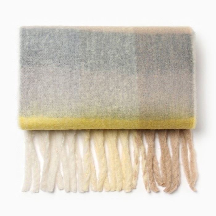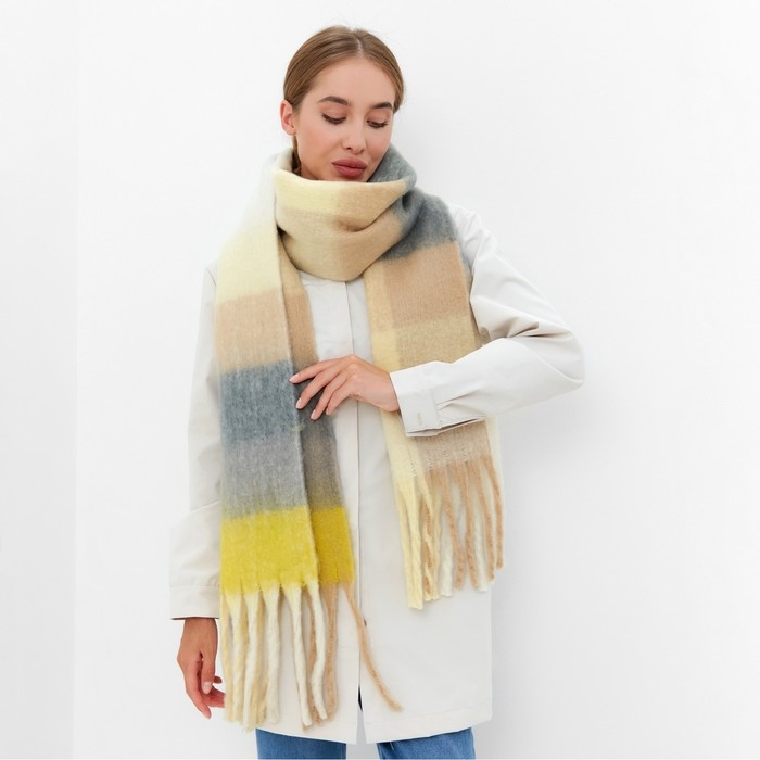 Шарф зимний объемный с кистями MINAKU клетка 210*38+18 см