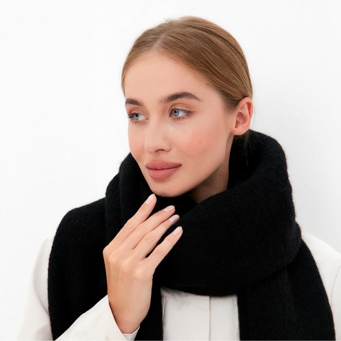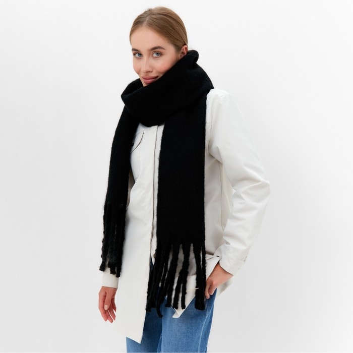 Шарф зимний объемный с кистями MINAKU 210*38+18 см цвет чёрный