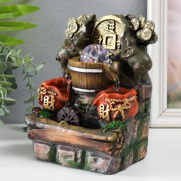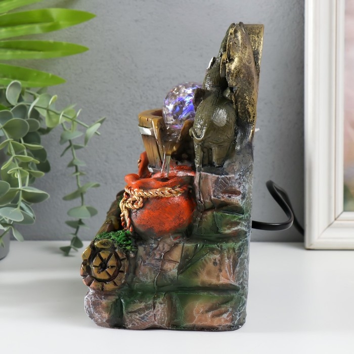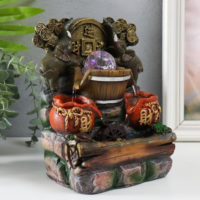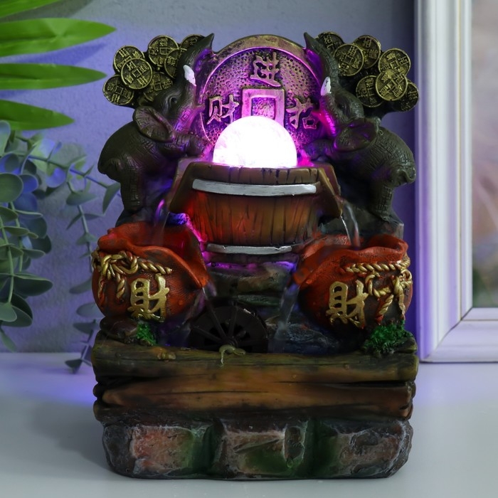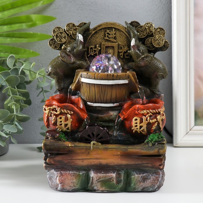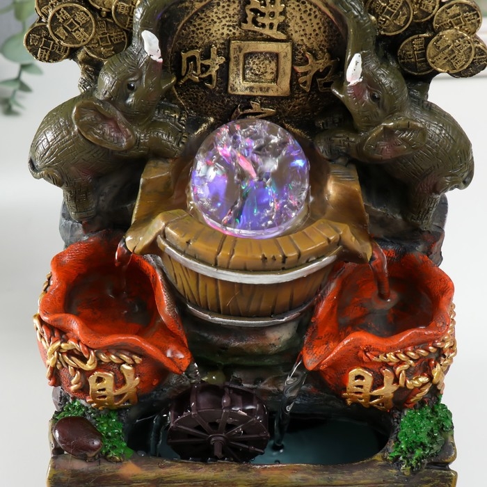 Фонтан настольный с подсветкой "Два слона с китайской монетой" 12х15х21 см