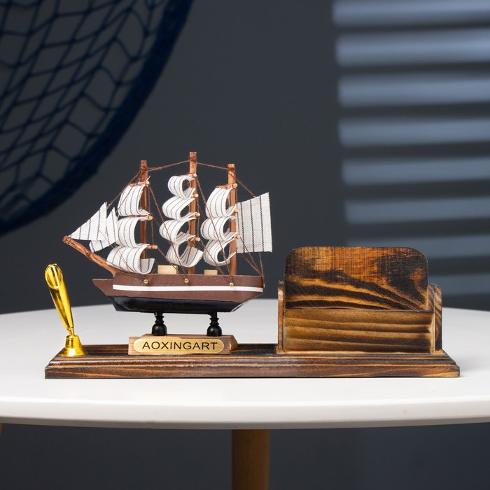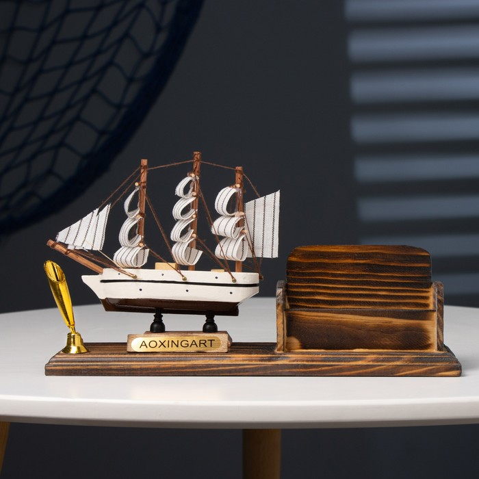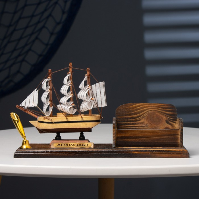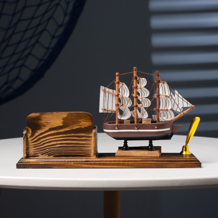 Набор настольный «Корабль»: визитница, подставка для ручки, 15 х 22 х 7 см