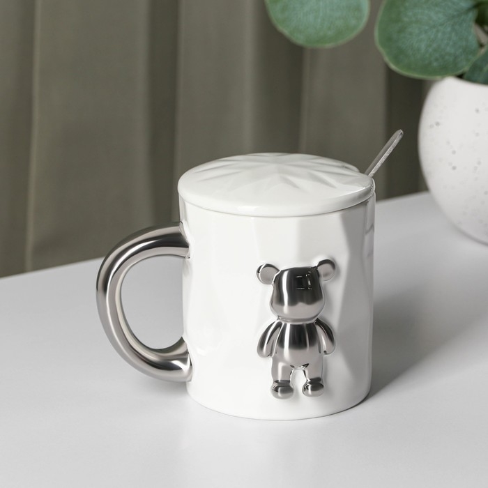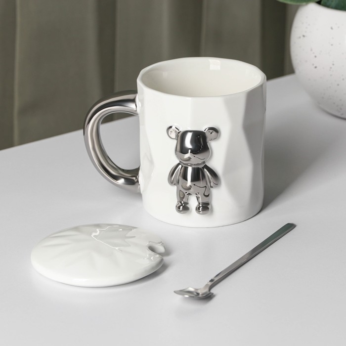 Кружка керамическая с ложкой «Стильный мишка», 320 мл, цвет белый
