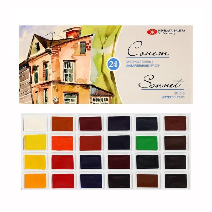 Акварель художественная в кюветах, 24 цвета х 2.5 мл, ЗХК "Сонет", 3541139