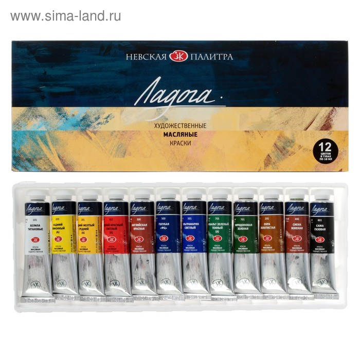 Краска масляная художественная, набор 12 цветов х 18 мл, ЗХК "Ладога", 1241004