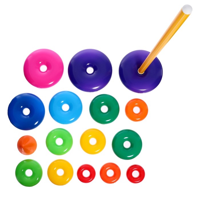 Пирамидка — одна из первых развивающих игрушек малыша. Состоит из основы-стержня, круглых колец с цифрами и наконечника в виде конуса.