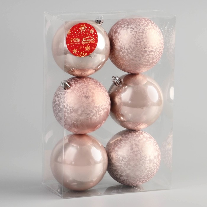 Набор шаров пластик d-7,5 см, 6 шт "Чары волшебства" пудровый