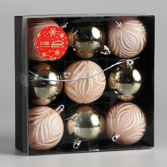Набор шаров пластик d-5,5 см, 9 шт "Морозная росшивь" штрихи, микс