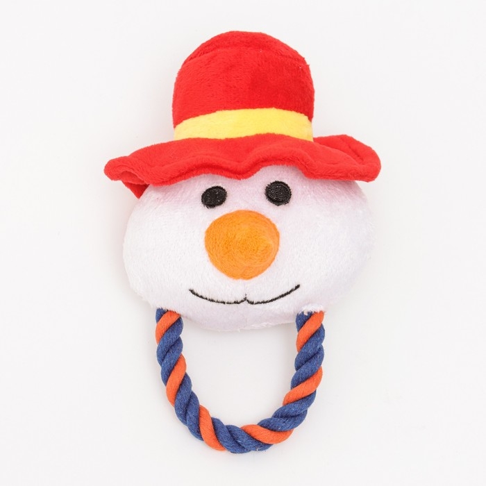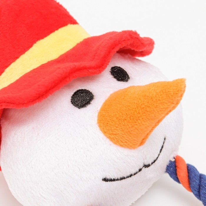 Игрушка мягкая для собак "Снеговик с канатом" с пищалкой