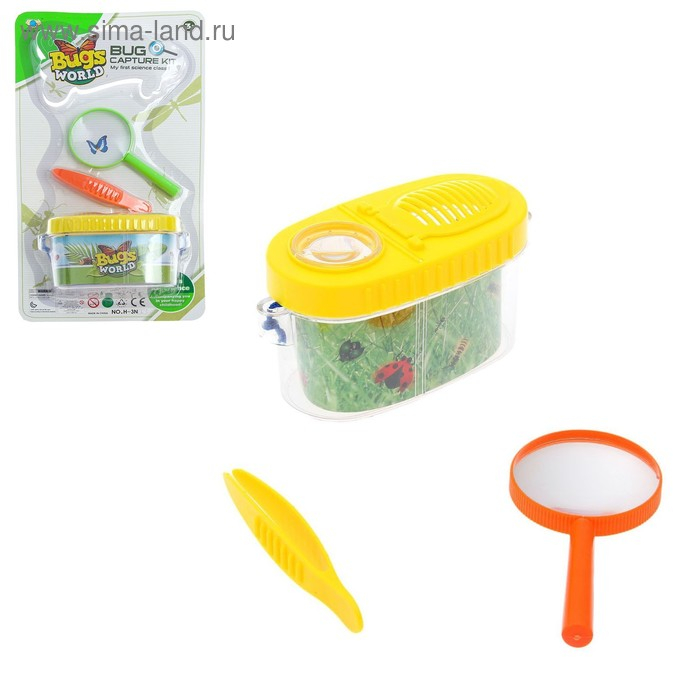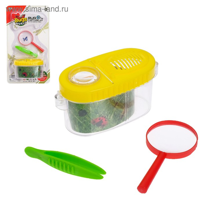 Набор для исследования «Юный биолог», пинцет, лупа, баночка для насекомых