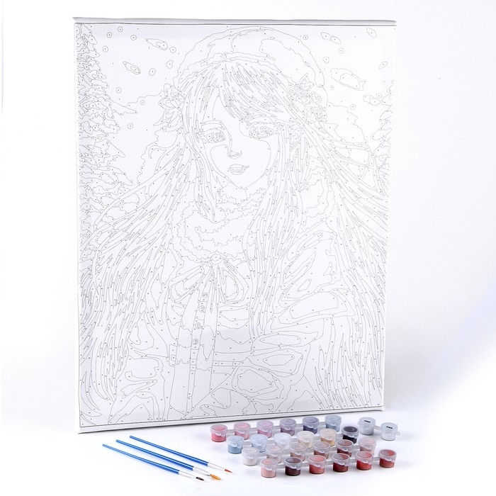 Картина по номерам на новый год на холсте с подрамником «Девушка под снегом», 40 × 50 см