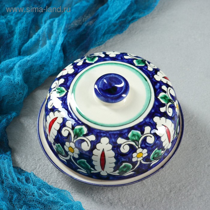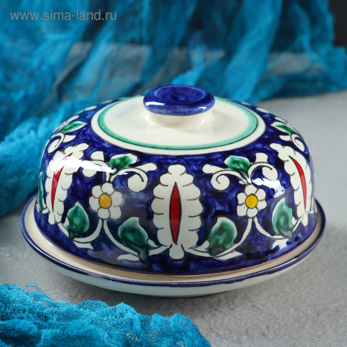 Масленка Риштанская Керамика "Цветы", 13 см, синий