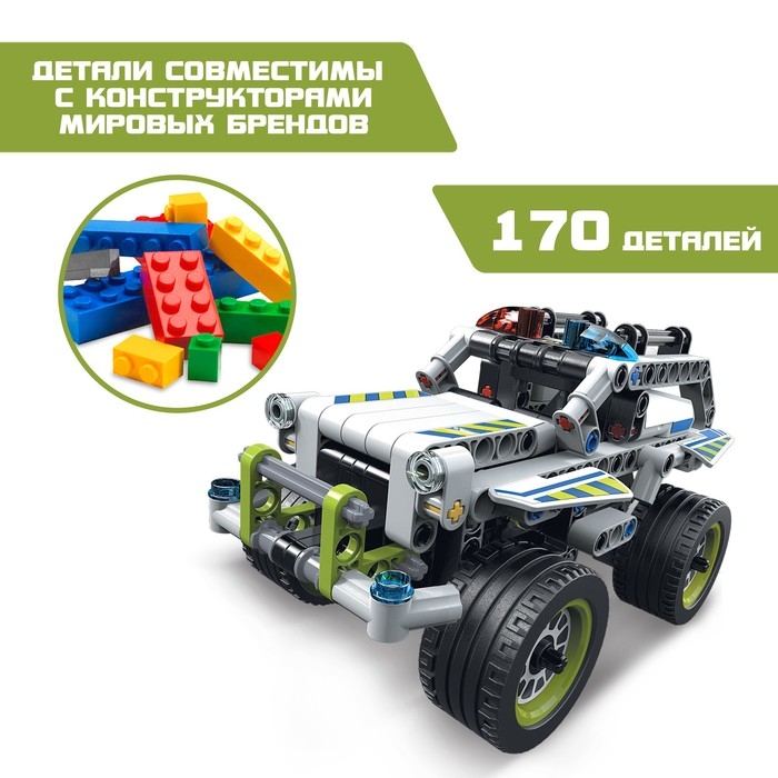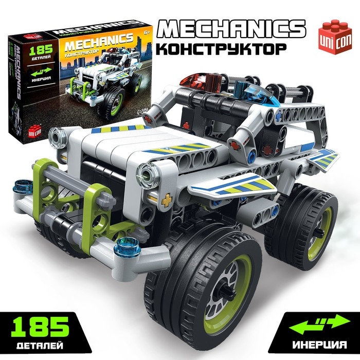 Конструктор полицейский внедорожник UNICON Техно, инерционный, 185 деталей, 6+