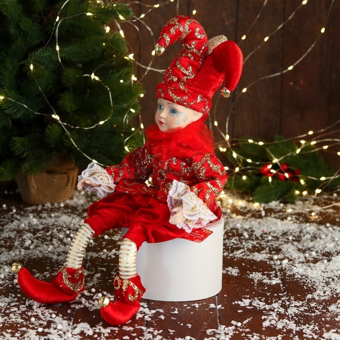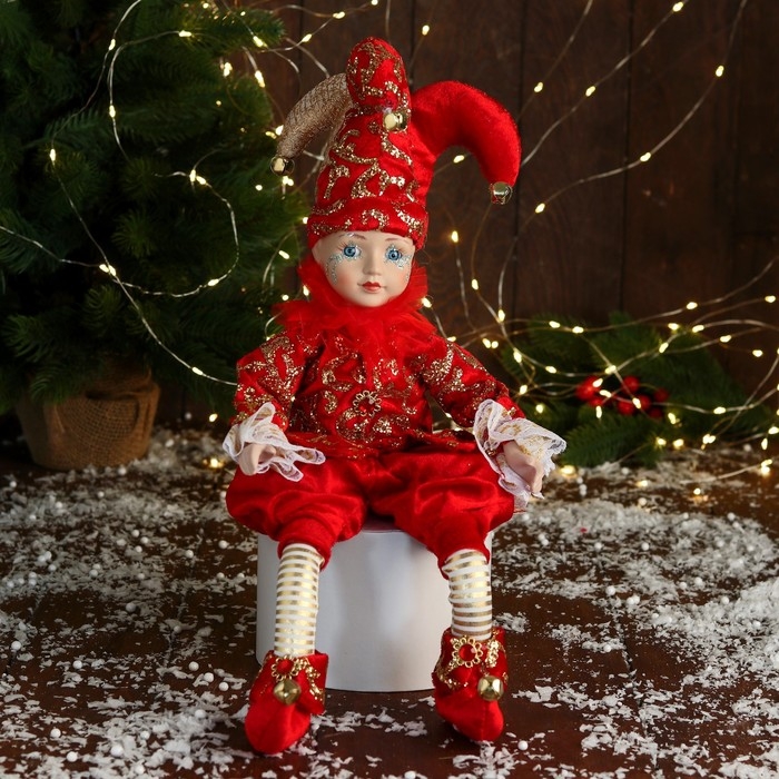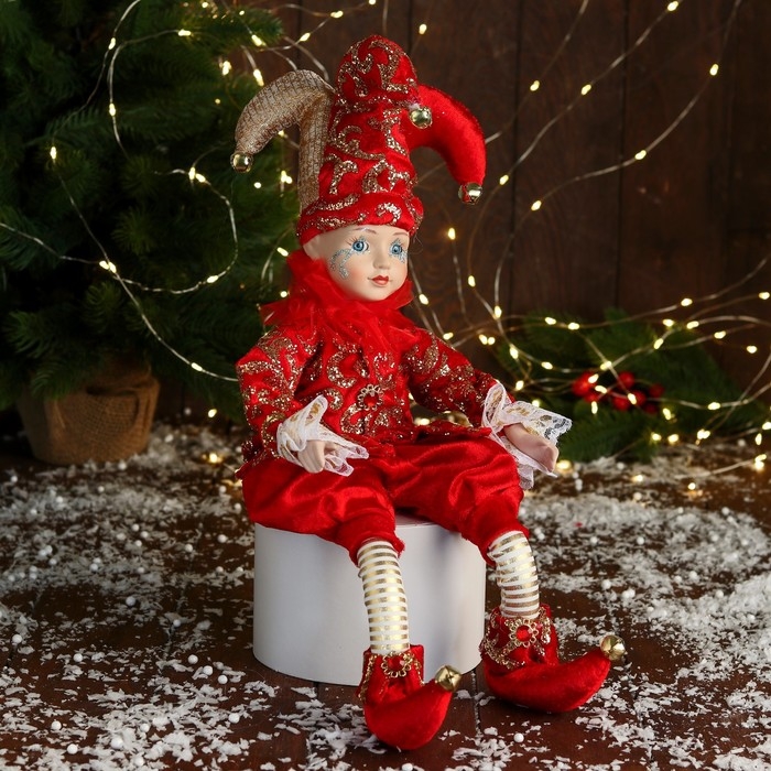 Новогодний шут "В нарядном костюмчике" музыка шевелит головой, 46 см, красный