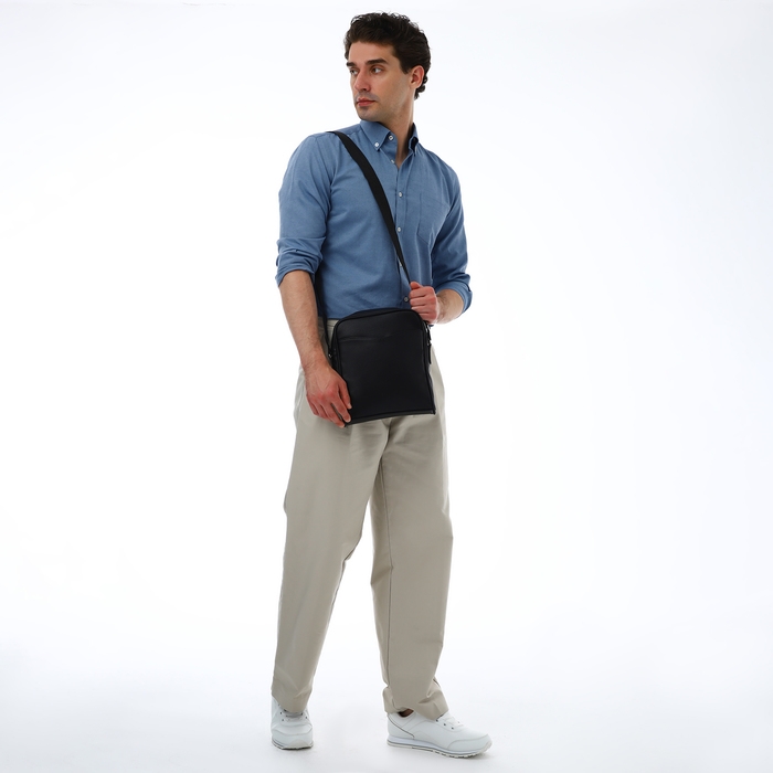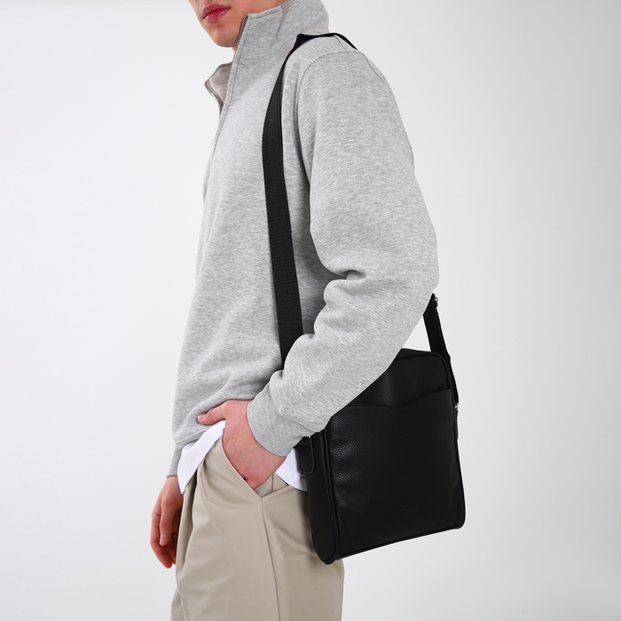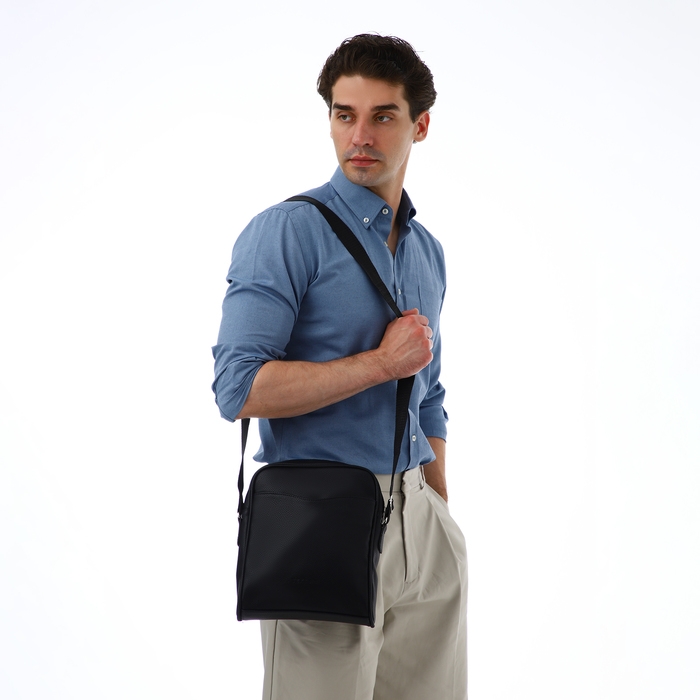 Сумка мужская через плечо TEXTURA, искусственная кожа, цвет чёрный