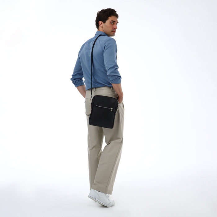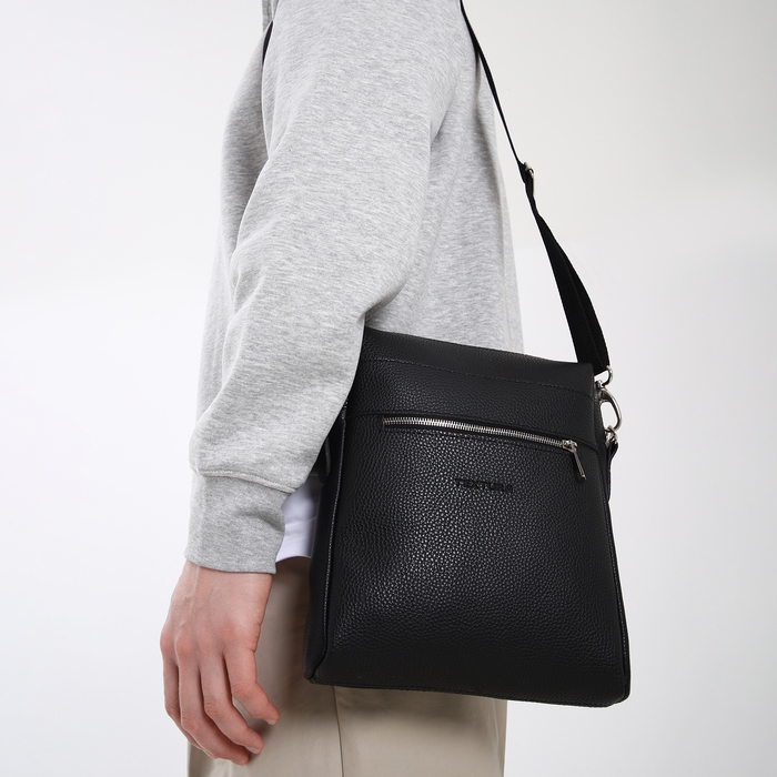 Сумка мужская через плечо TEXTURA, искусственная кожа, цвет чёрный