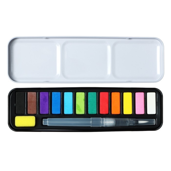 Краски акварельные, в кюветах, с кистью, 12 цветов