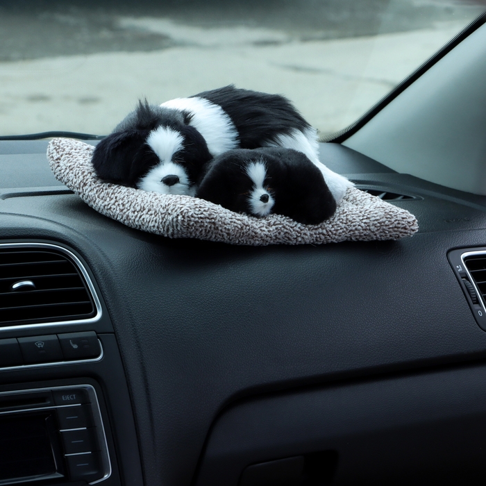 Игрушка на панель авто, собаки на подушке, бело-черный окрас