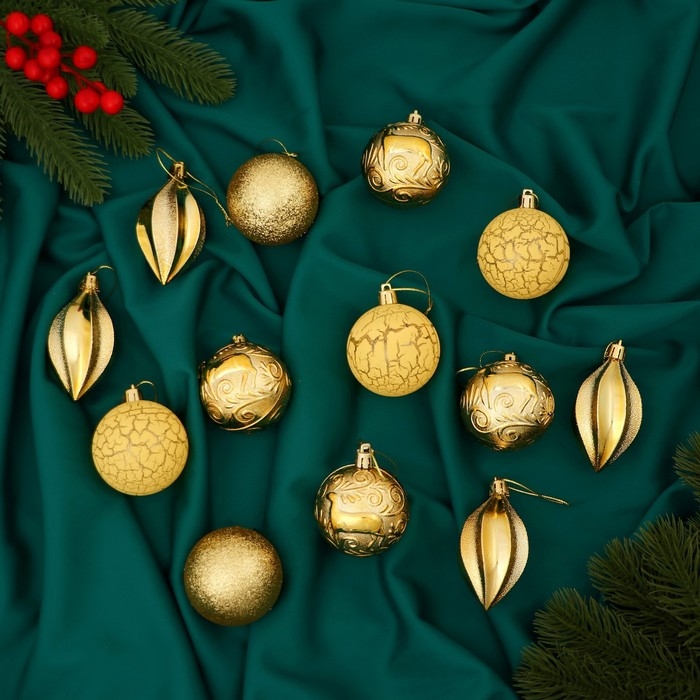 Набор украшений пластик 13 шт "Мелодия" капелька, 6 см, золото