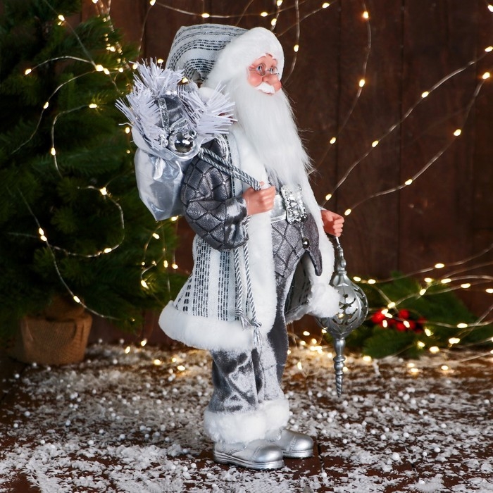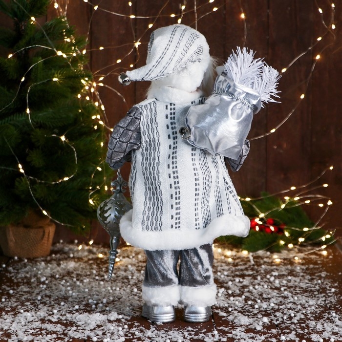Дед Мороз "Клетчатом жилете " музыка шевелит головой, 43 см, серый