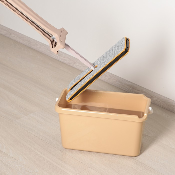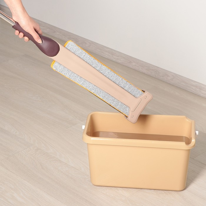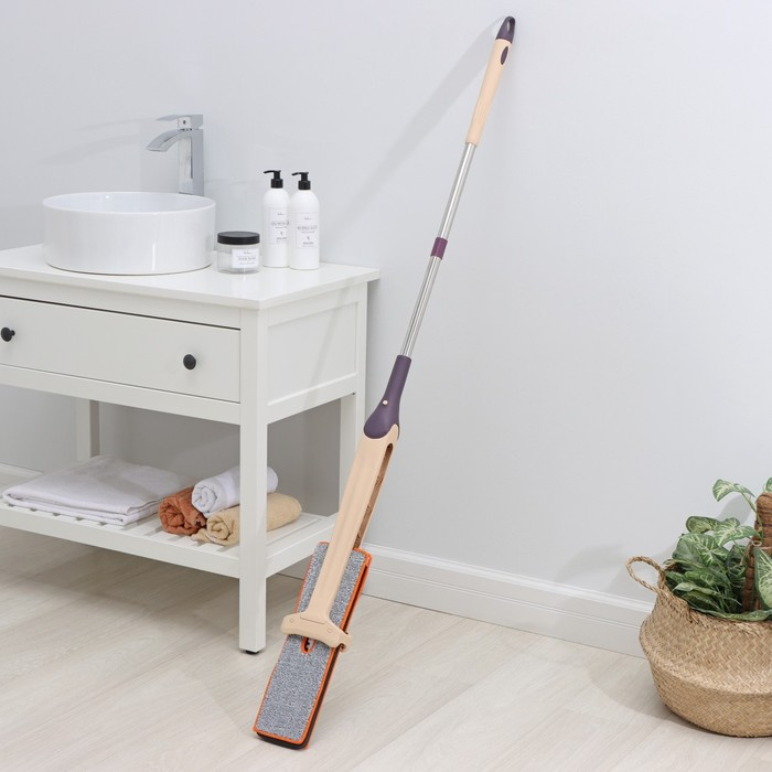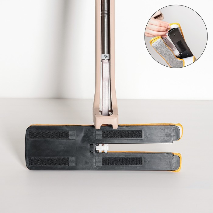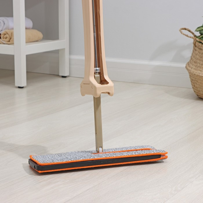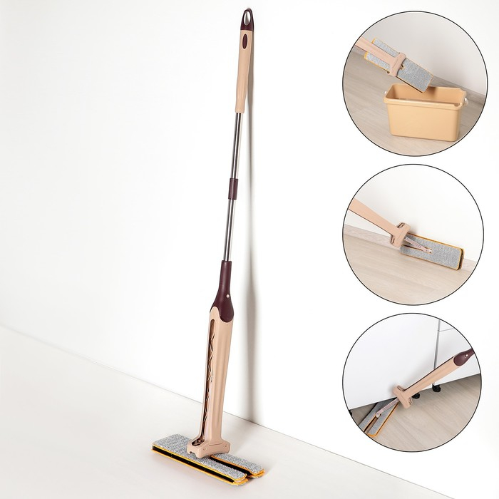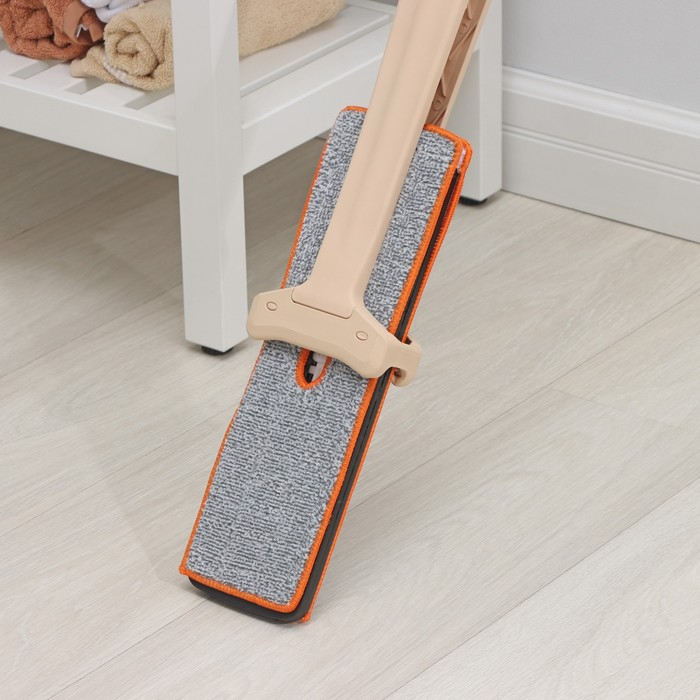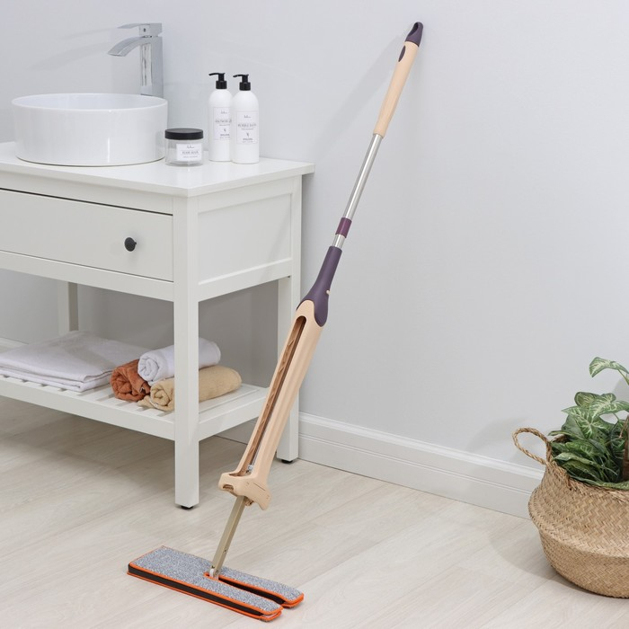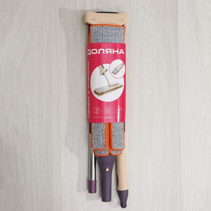 Швабра с отжимом Доляна, двусторонняя насадка из микрофибры 38×12 см, стальная ручка 134 см