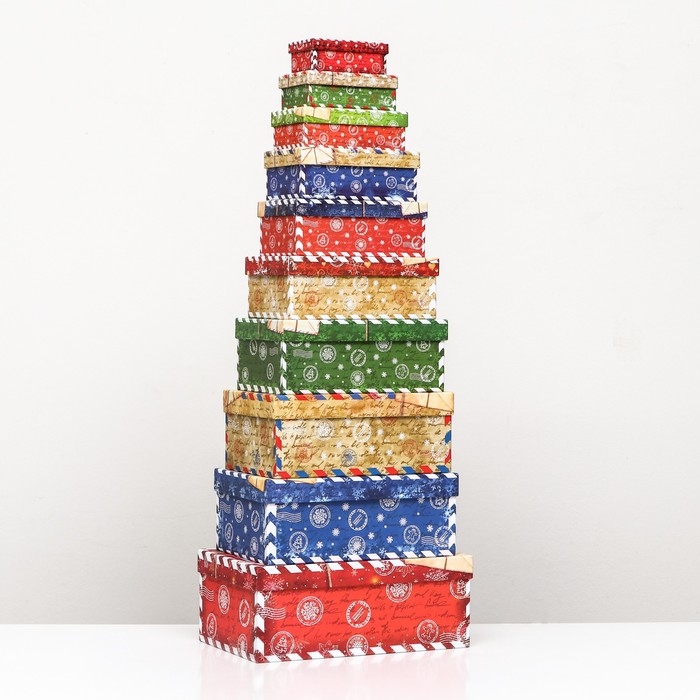 Набор коробок 10 в 1 "Почта от Деда Мороза", 30 х 19 х 11,5 - 12 х 6,5 х 4 см