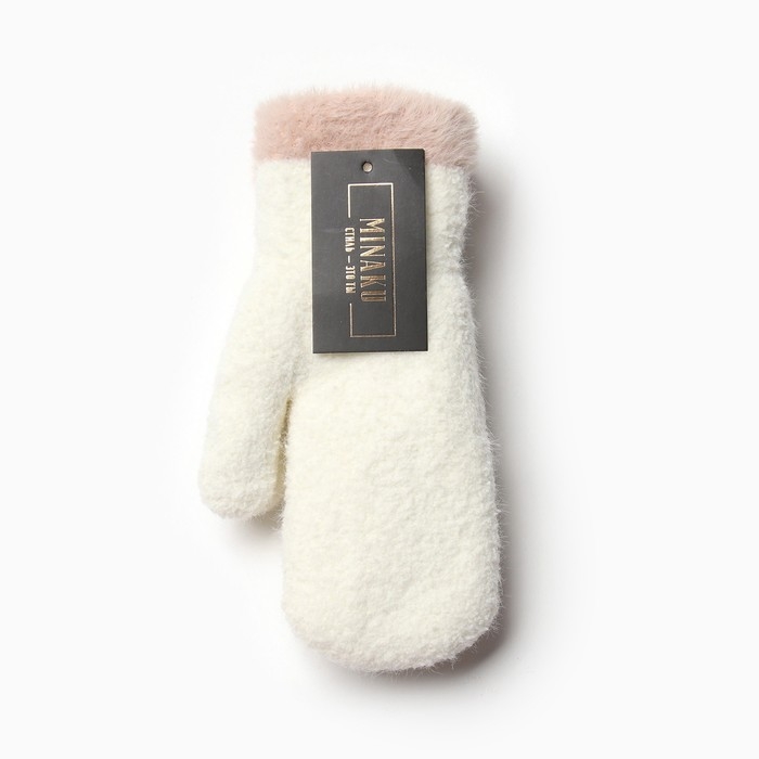 Варежки женские на иск.меху MINAKU опушка 22 см молочный