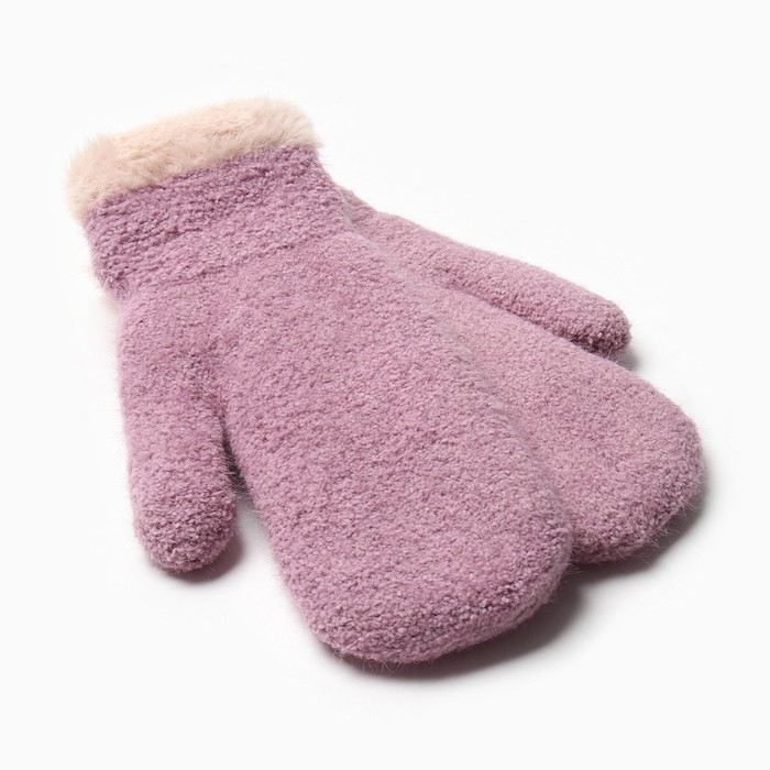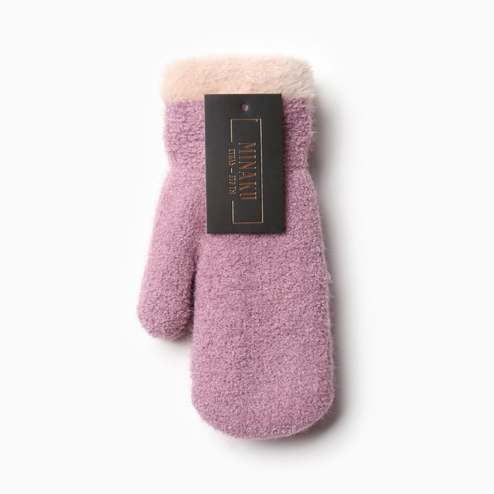 Варежки женские на иск.меху MINAKU опушка 22 см сиреневый