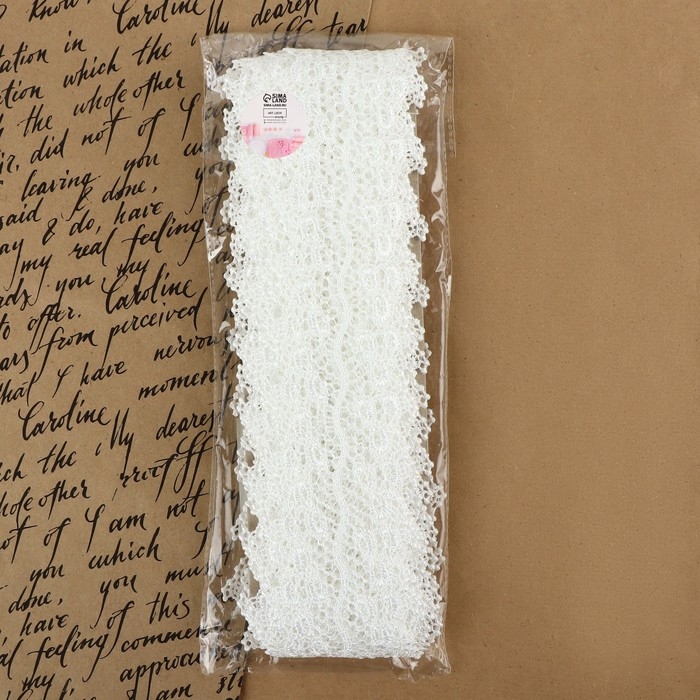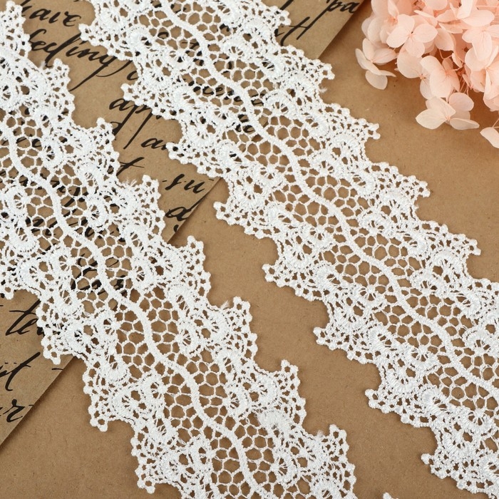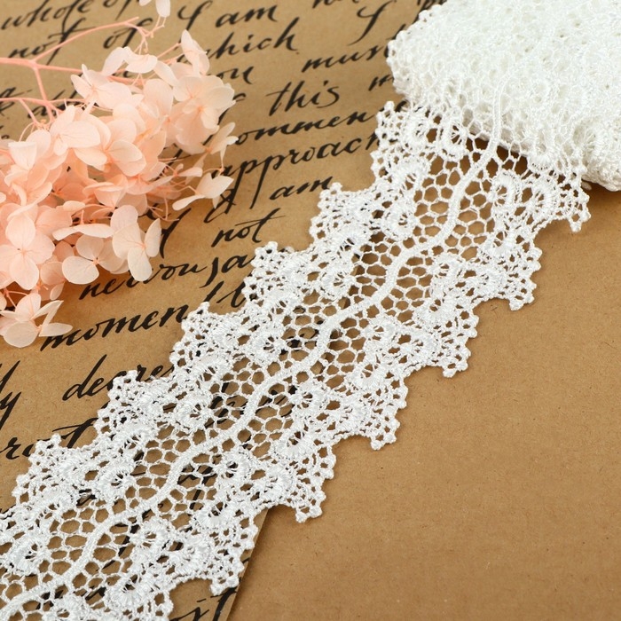 Кружево гипюровое, 60 мм × 6,8 ± 0,5 м, цвет белый