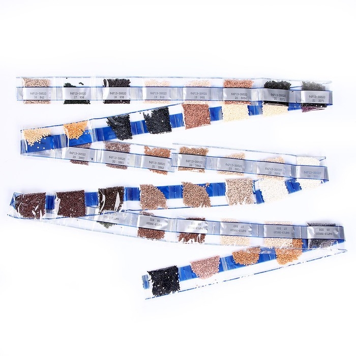 - Найдите в таблице номер, соответствующий символу на схеме. Из пакетика с этим номером отсыпьте в ёмкость немного стразов.