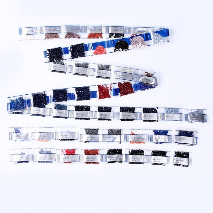 Разложите кристаллики с помощью карандаша по указанной схеме, заполнив полотно. Тканевая основа с точечным клеевым покрытием будет надёжно удерживать стразы. На картине уже обозначены необходимые оттенки.