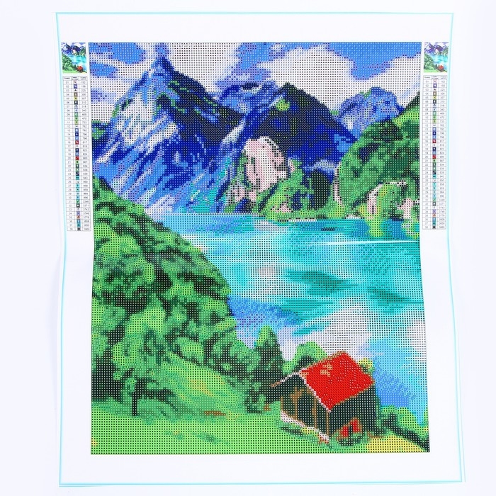 Алмазная мозаика с полным заполнением на холсте «Горное озеро», 40 х 50 см