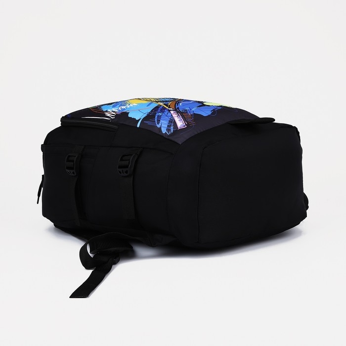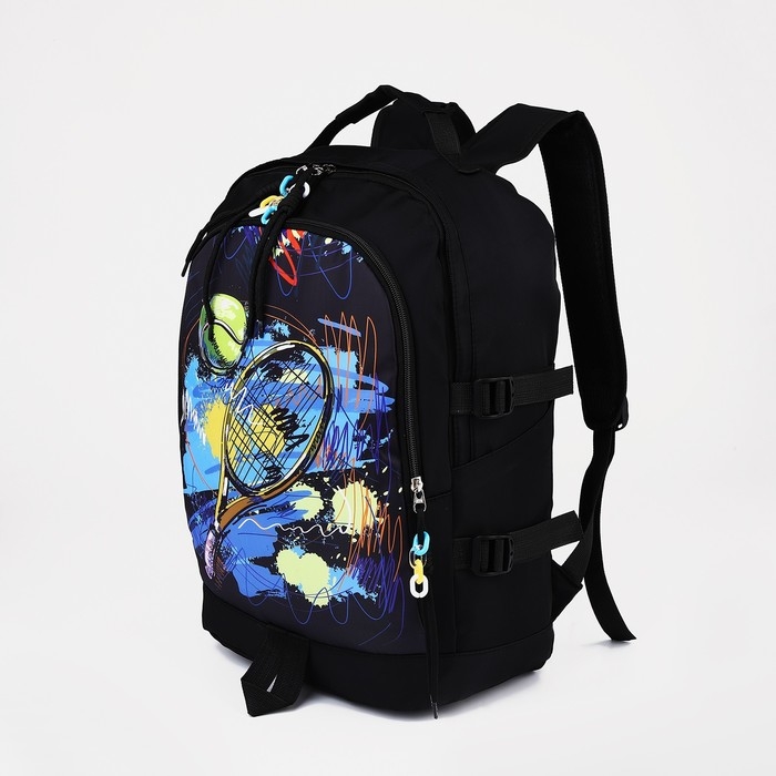 Рюкзак молодёжный из текстиля на молнии, 3 кармана, цвет чёрный