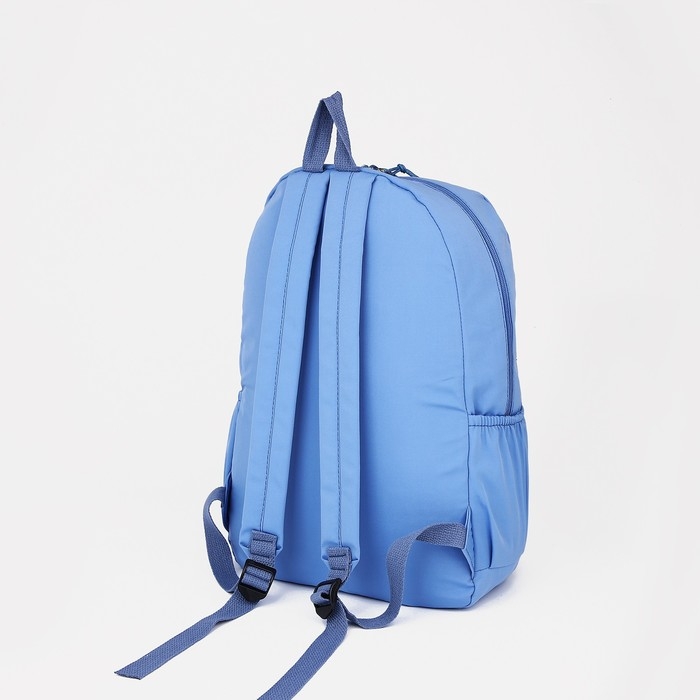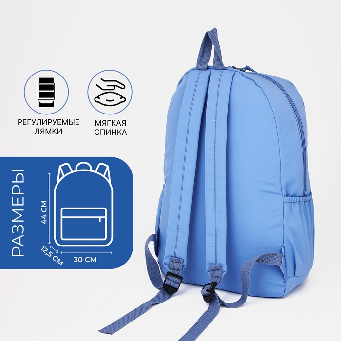 Рюкзак школьный на молнии, 4 наружных кармана, цвет светло-синий